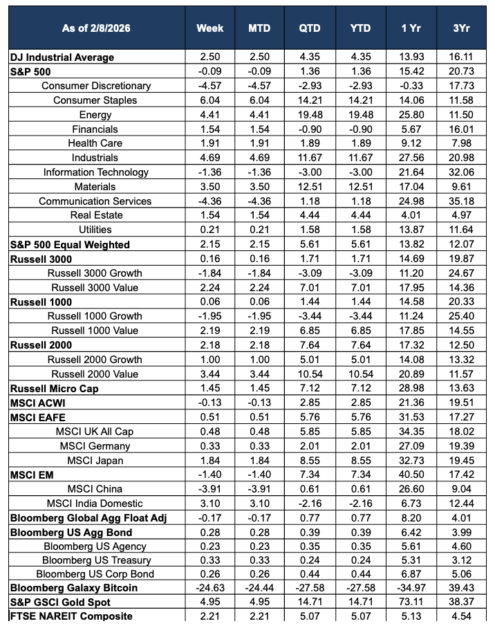 Beyond equities, volatility increased across commodities and global markets, with precious metals pulling back from recent highs and international indexes reacting to geopolitical developments and central bank uncertainty. Overall sentiment remained highly data-dependent, as investors looked ahead to upcoming economic releases and earnings reports for clearer direction.