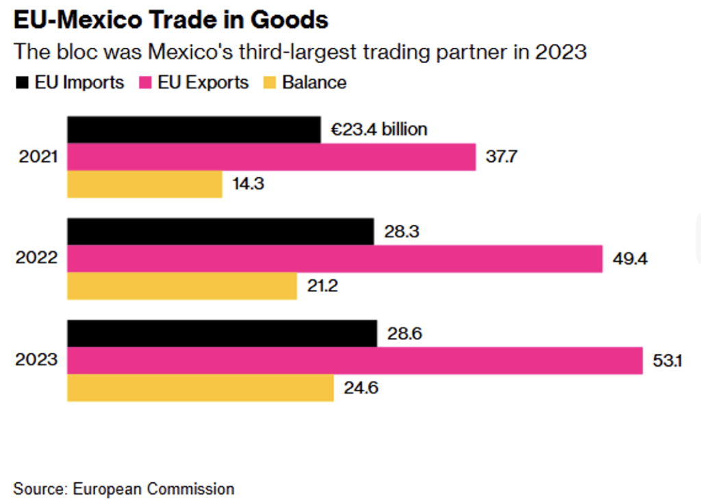 As we embark on a new path with respect to US trade relations with the incoming Trump Administration, the European Union and Mexico finalized a trade deal this week intended to revamp their free trade agreement, aiming to boost trade and de-risk supply chains ahead of Trump’s tariffs. The agreement seeks to expand EU exports in areas such as telecommunications and critical raw materials and will cut tariffs on products such as cheese, poultry, pork, chocolate, and wine.