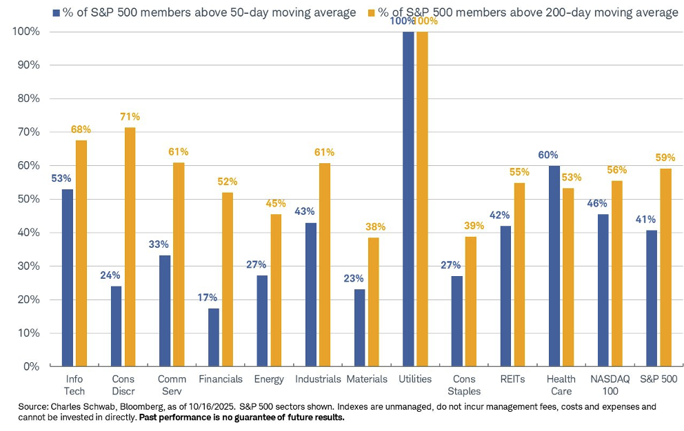 As the S&P continues to advance forward, AI names continue to advance but so have sectors that support AI, most notably, Utilities, with 100% of stocks in that sector above their 50 and 200 day moving averages. They are the second-best performing sector in the S&P 500, advancing 23.53% YTD ending Friday, behind Communication Services, up 24.84%. Names that have nuclear energy exposure are up over 25% year to date.