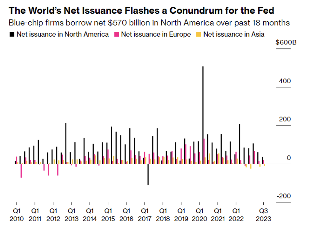US Treasuries jumped significantly this week in response to the stronger than expected US jobs report, and investors are now looking ahead to next weeks’ CPI and PPI prints which will provide more clarity on the strength of the US economy. Yields on the longer dated end of the curve saw a significant uptick this week while the increase was more muted for shorter term bonds. The 2-year Treasury yield rose 5 bps throughout the week to close at 5.08% hitting its highest level since 2007, meanwhile the 10-year Treasury yield rose 19 bps to close at 4.78%, and the 30-year Treasury yield rose 22 bps to close at 4.95%. All major bond indices fell over a percent, with the Bloomberg US Aggregate Bond Index falling -1.17%, the Bloomberg US Corporate High Yield Index falling -1.21%, and the Bloomberg US MBS Index falling -1.22%.